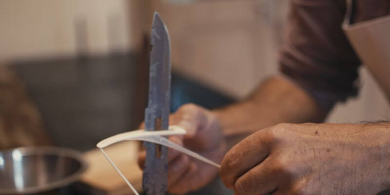 The casings are repeatedly cleaned by hand (to remove the fatty membranes) in a process lasting several days.